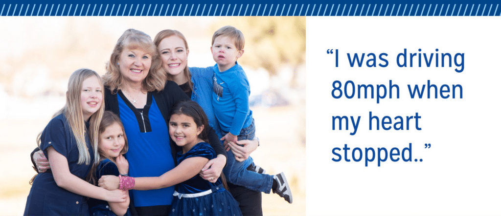 June 22 is a day that Craig Lathan and Melanie Parrish Anderson, 58 years old, will not soon forget. Melanie was driving 80 miles an hour on Interstate 84 when she went into cardiac arrest and stopped breathing. She was driving with her daughter and two grandchildren. Kimberly, her daughter, was able to get the vehicle stopped, but not without a bumpy ride through the median kicking up dust and scarring the interstate with a long black skid mark.