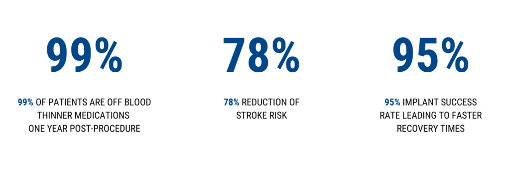 Atrial Fibrillation (also known as Afib) is a quivering or irregular heartbeat that can lead to blood clots, stroke, heart failure and other heart related complications. Previously, the only option to prevent a stroke with atrial fibrillation was taking blood thinners such as warfarin, Eliquis, etc. and other medication to help control the heart rate during atrial fibrillation. Not anymore.